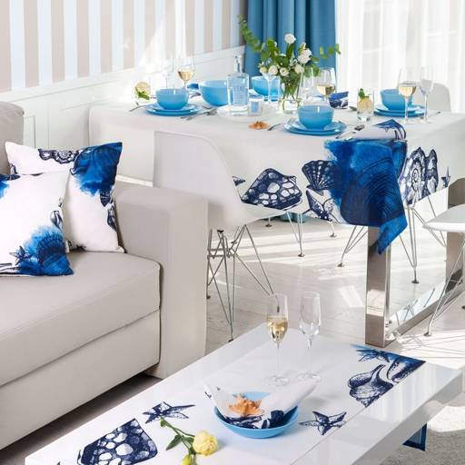 Produkt bol vyrobený z odolného polyesteru s hladkou štruktúrou. Materiál je praktický pri každodennom používaní a ľahko sa udržiava v čistote. Zlaté zakončenie predstavuje dekoratívny detail, ktorý sa dobre kombinuje s klasickým riadom, ako aj s modernými stolovými doplnkami.